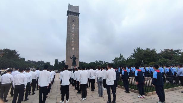 秋日的雨花台烈士陵园,松柏苍翠、静穆庄严。烈士纪念碑前的台阶上,数万盆鲜花组成“信仰”字样,以缅怀革命先烈。烈士纪念碑巍峨高耸,“宁死不屈”的革命烈士塑像前,象征革命精神薪火相传的“长明灯”熊熊燃烧、生生不息。