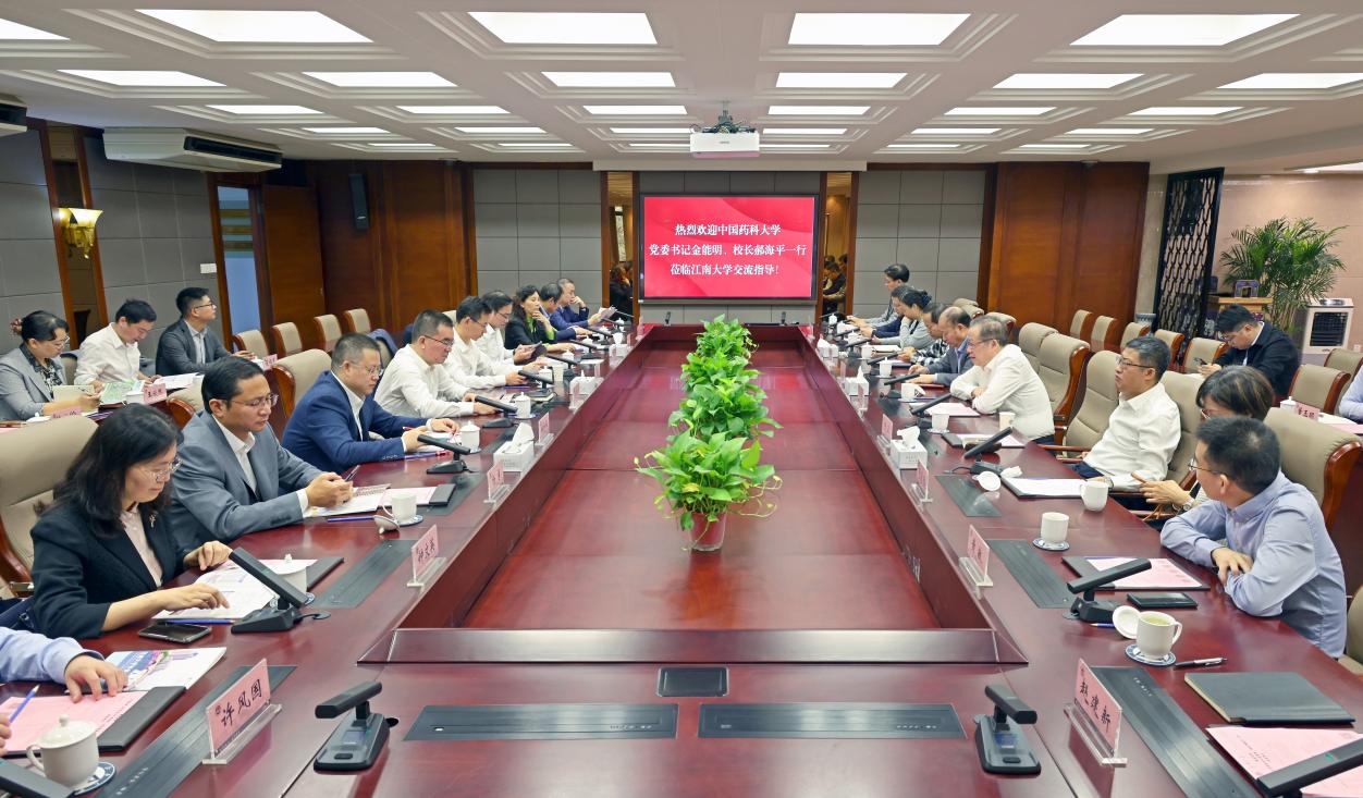 10月7日上午,beat365金能明书记、郝海平校长一行赴江南大学调研。江南大学党委书记朱庆葆,中国工程院院士、江南大学校长、党委副书记陈卫,副校长顾正彪、张影陆,beat365副校长姚和权、齐炼文、杨勇出席调研座谈会。无锡市科技局成果处处长赵雪倩列席会议。会议由江南大学副校长张影陆主持。