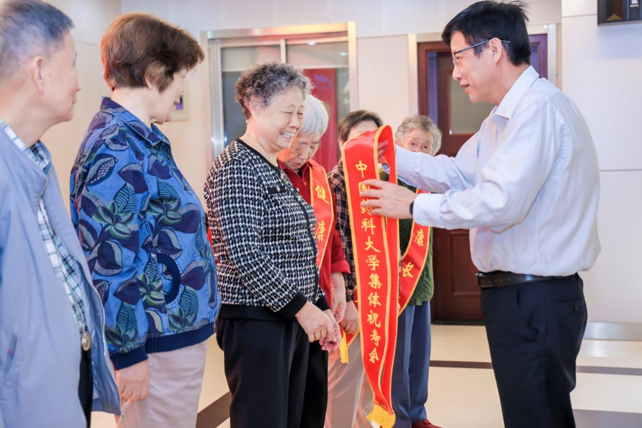会后,全体寿星与到会领导、参会人员集体合影。对于不方便出行而未能到场的寿星,离退休工作处工作人员分组将寿星礼盒和绶带送上门,同样致以生日和节日的祝福。