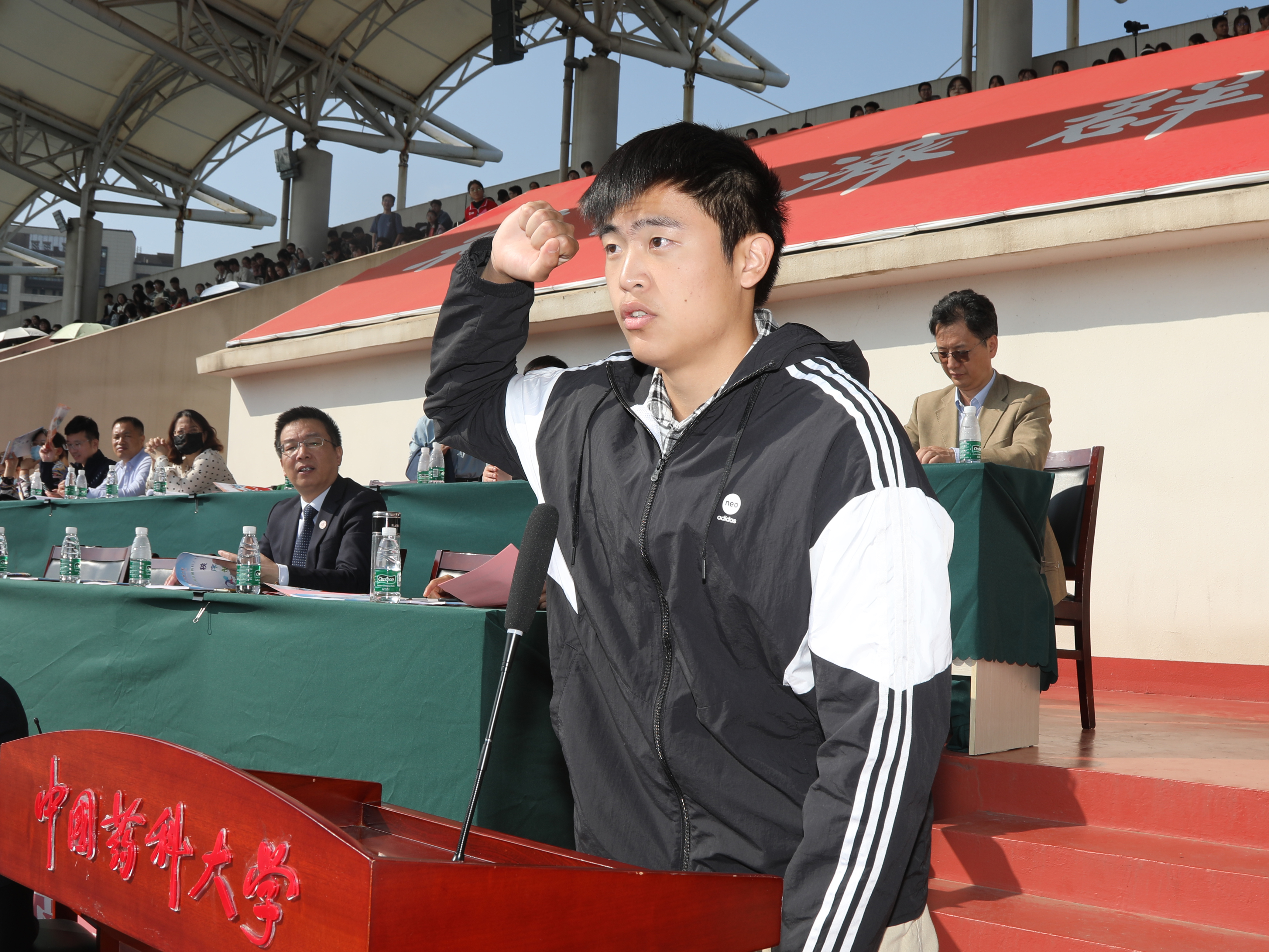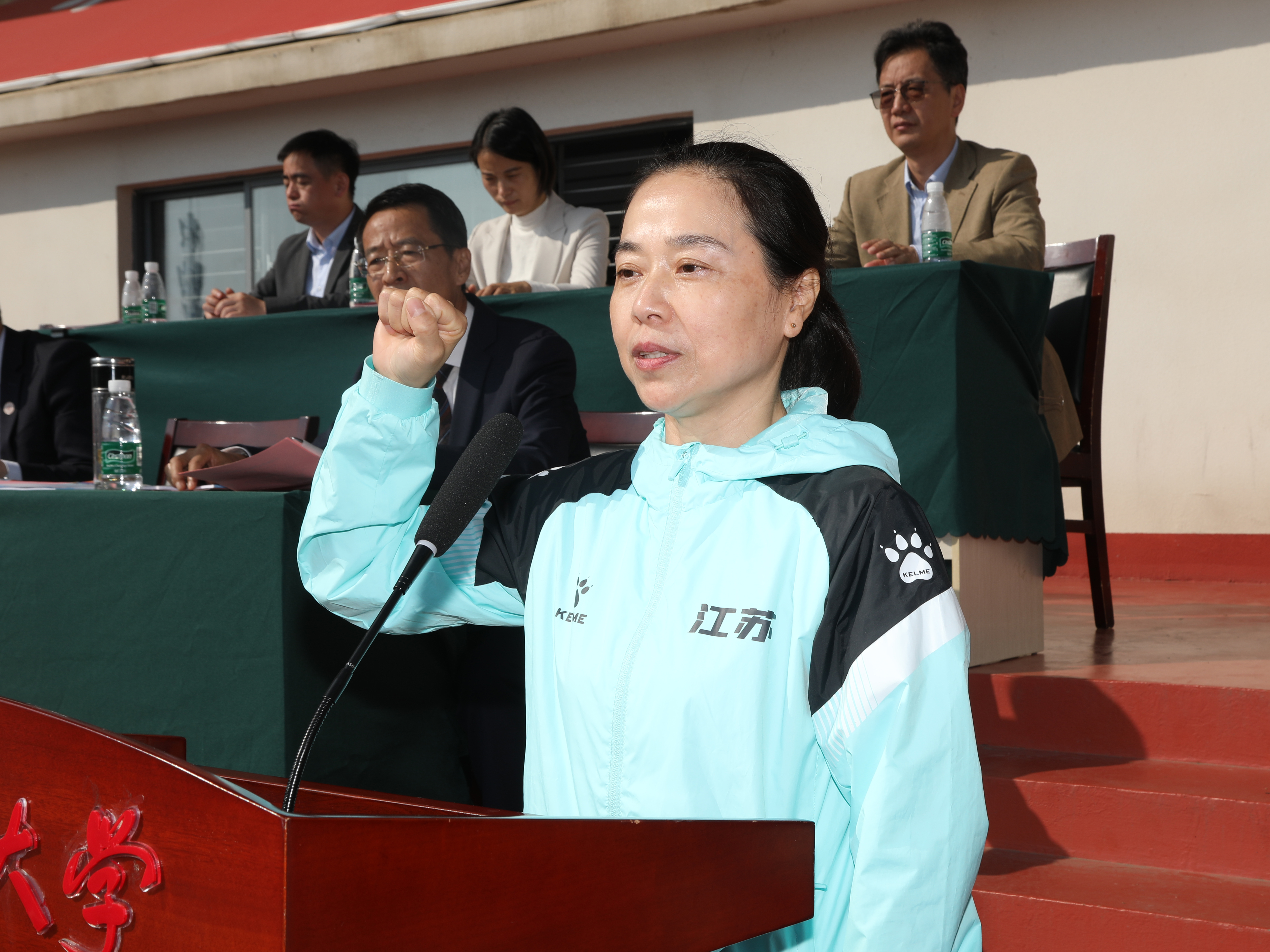 随后,裁判员代表、体育部朱敏老师和运动员代表、2020级国际医药商学院吕延芾同学进行了庄严宣誓。