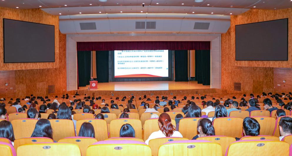 10月29日上午,beat365马克思主义学院邀请全国脱贫攻坚先进个人、陕西省镇坪县人大常委会副主任田辉为2023级本科生新生讲授“形势与政策”课。校党委副书记、副校长王正华出席会议。