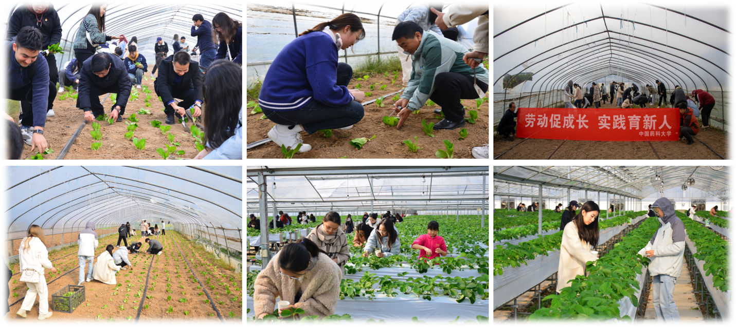 随后,师生在田间地头共同上了一堂以“劳动促成长,实践育新人”为题的劳动思政课。全国劳动模范、南京“缘派”蔬菜专业合作社理事长周福安现场为师生们传授了菜苗种植和草莓施肥方式,亲身示范种植方法和施肥要领,并与同学们亲切交流劳作心得,鼓励广大青年学生积极参与劳动实践,在与现实相结合的“大思政课”中受教育、长才干、作贡献。同学们纷纷表示,第一次在田间体验劳动实践,感触颇深,受益良多。今后将身体力行弘扬劳模精神,在成长发展、学习科研中勤于“自找苦吃”,敢于“啃硬骨头”,为推进健康中国建设贡献青春力量。
