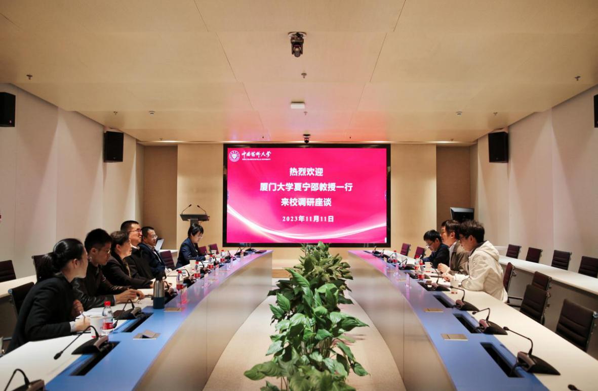 11月11日,传染病疫苗研发全国重点实验室主任、厦门大学公共卫生学院/生命科学学院夏宁邵教授一行3人来访beat365多靶标天然药物全国重点实验室(以下简称全国重点实验室)。校党委书记金能明,副校长姚和权教授,全国重点实验室主任李萍教授、副主任杨华教授,科学技术研究院、基础医学与临床药学院党委等相关职能部门和院系负责人出席座谈会。