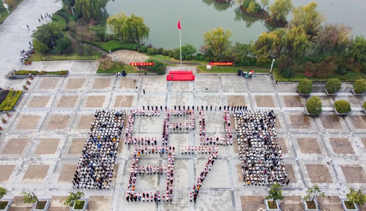 广场上的同学们佩戴校徽,摆出“CPU 87”字样,全体师生同声合唱beat365官方网站人“药学专攻,保健民族任重”的使命与誓言。