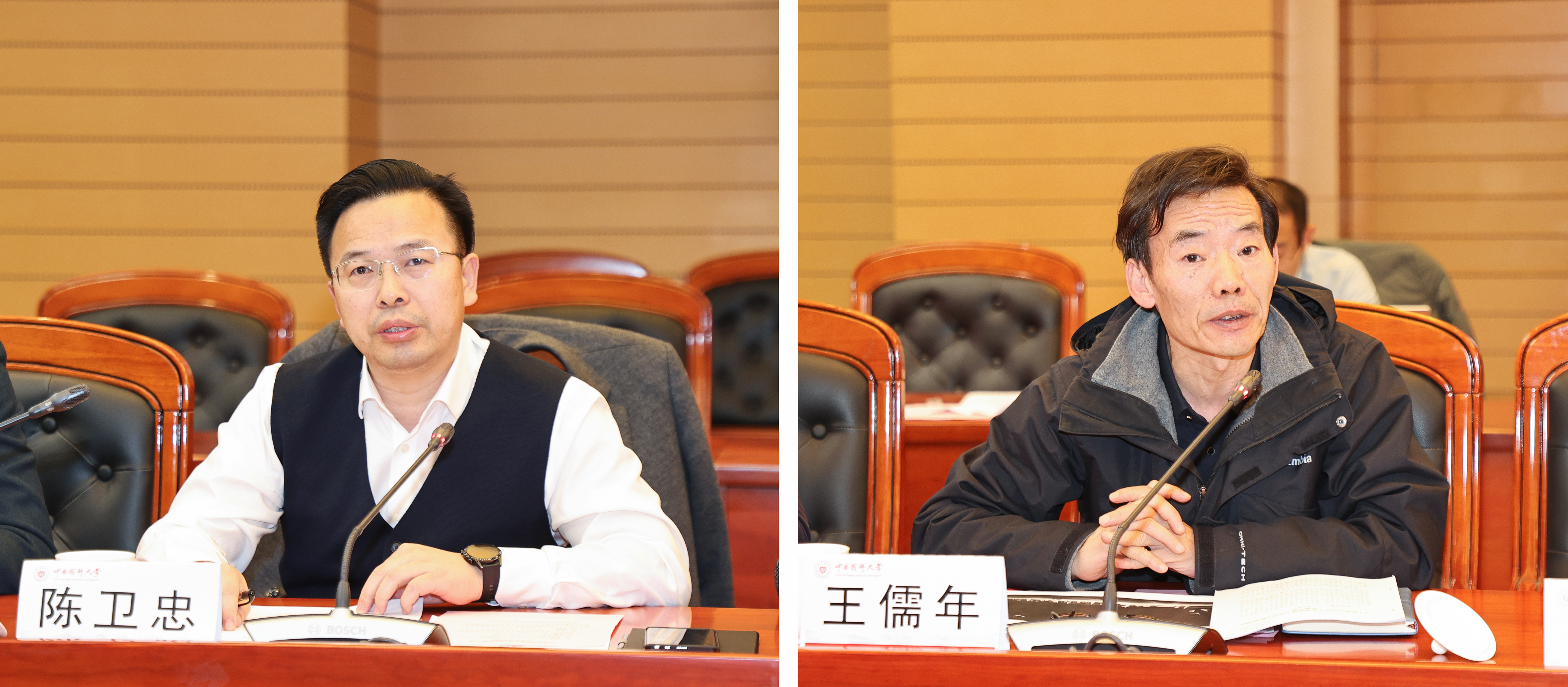 马克思主义学院院长王儒年作重点发言,他从习近平文化思想的形成过程、具体含义、热点解读等方面汇报了个人学习体会,并结合学校实际,在赋予校史校歌校训新的时代元素等方面交流了学习心得。