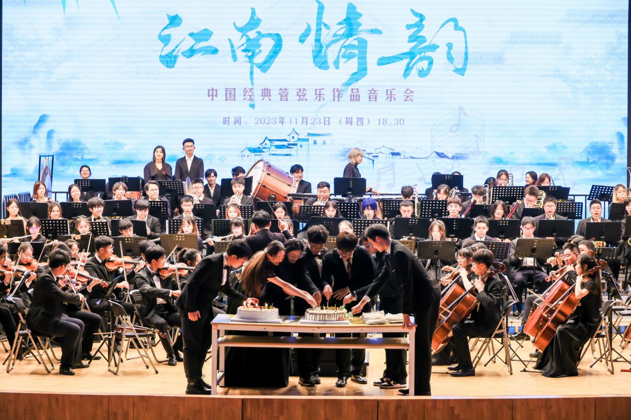 为深入学习贯彻习近平文化思想,11月23日晚,由校团委主办,文化艺术教育中心、校大学生艺术团承办的庆祝建校87周年“江南情韵”——中国经典管弦乐作品音乐会在江宁校区大礼堂成功举办。音乐会由文化艺术教育中心严岩副教授担任指挥,校交响乐团演奏。校党委副书记、副校长王正华、相关部门负责人及师生代表近800人共同欣赏了音乐会。