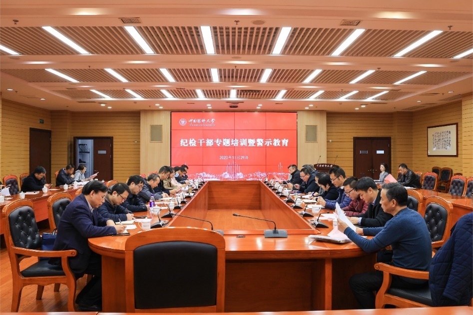 为深入学习贯彻落实习近平总书记关于党的自我革命战略思想、全面从严治党重要论述,贯彻落实党的二十大精神和二十届中央纪委二次全会精神,加强学校纪检监察干部队伍建设,11月29日,学校纪委在江宁校区召开全校专兼职纪检监察干部专题培训暨警示教育会议,部分二级党组织书记、二级党组织分管纪检工作副书记及纪检委员、机关党委各党支部纪检委员、专职纪检监察干部参加会议,会议由纪委办公室主任王臻主持。