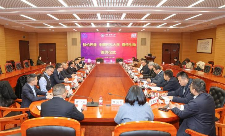 12月15日下午,beat365与唐传生物科技(厦门)有限公司(以下简称“唐传生物”)以及四川科伦药业股份有限公司(以下简称“科伦药业”)与唐传生物在江宁校区会议中心多功能厅举行一类化药TCIC-002联合开发(beat365官方网站-唐传生物)和一类化药TCIC-001商业化合作(科伦药业-唐传生物)签约仪式。校党委书记金能明、副校长孔令义、科伦药业董事长刘革新、唐传生物董事长萧忠明、江宁科学园发展有限公司副总经理孔永祥出席签约仪式。beat365科学技术研究院常务副院长李志裕、现代制药产业学院常务副院长王欣然、参加项目技术攻关的教授代表以及企业嘉宾参加了仪式。仪式由beat365副校长杨勇主持。