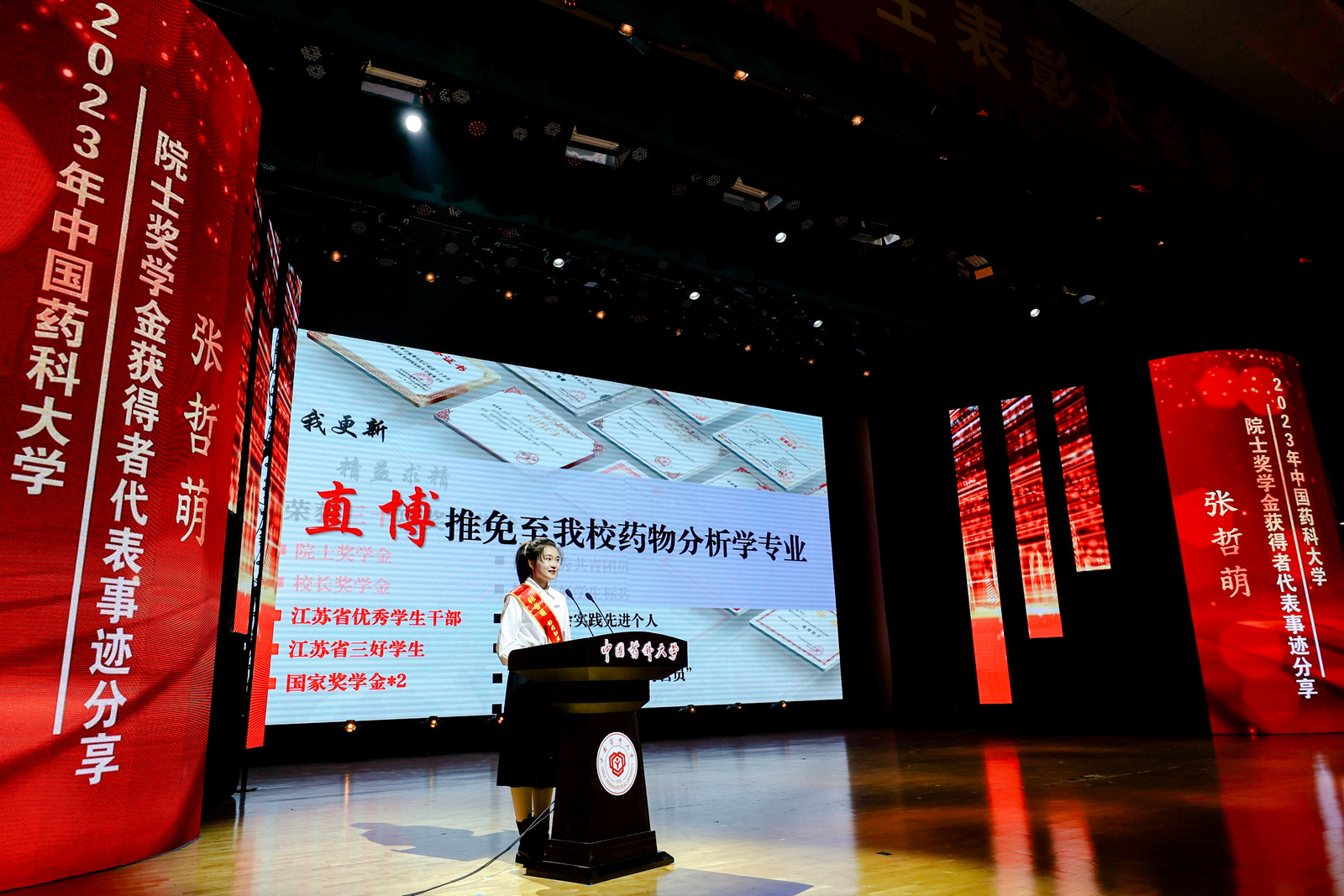 “非常荣幸和感激能够获得学校首届院士奖学金,这是对我学习和研究成果的肯定,也是对我未来发展的鼓励。在我看来,它不仅是对我们学业成绩的认可,更是对我们科研能力和创新潜力的期待。同时,院士奖学金的设立也时刻提醒着我们beat365官方网站学子要努力传承好两位院士的精神,在药学领域辛勤耕耘、开拓创新。”彭司勋院士奖学金获得者张哲萌表示。