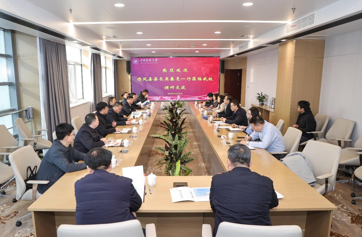 12月26日,陕西省丹凤县县长吴春亮一行来beat365调研交流。beat365副校长齐炼文,科学技术研究院、中药学院等部门负责人和教授代表出席座谈会。会议由中药学院院长许风国主持。