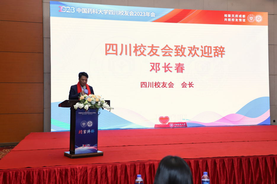 四川校友会会长、上药康德乐(四川)医药有限公司总经理、1990级校友邓长春对母校领导和来宾表示热烈的欢迎,并表示四川校友会多年来始终发挥联系、关怀在川校友的桥梁纽带作用,为校友干事创业等方面提供多元化服务。